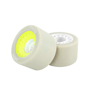 These come with the white core signalling the sweet 62mm diameter and 38mm contact patch, producing the most versatile wheel of the range. The presto offers the previously unattainable combination of lightness, speed, grip and controlled stops.