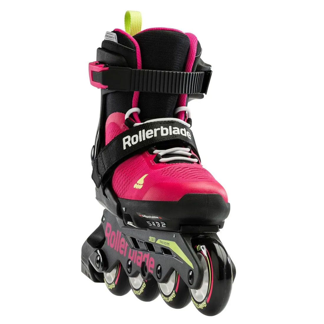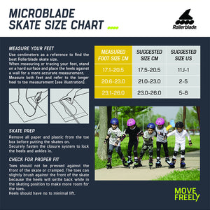 Microblade is a high-quality adjustable skate for kids. Using Rollerblade expertise, the skates are adjustable four full sizes. An easy-to-use extension system works with the push of a button and markers in the toe area align the skates to the correct size. Junior Fit support includes an engineered mesh for breathability and provides enhanced comfort.