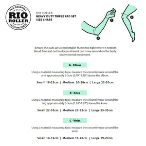 Protect yourself from falls and scrapes in Rio Roller’s very own stylish triple pad set in red and green. The caps on the knee and elbow pads, finished in a gorgeous off-white colour, provide protection against scrapes and impacts while the dual splint wrist guard gives support and comfort.