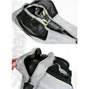 The entire bag uses tried and tested high quality materials made to last and last, and features two large compartments that hold your skates and pads perfectly. The improved bag now also has a plasticised bottom and riveted base to strengthen the bag and better support your skates.