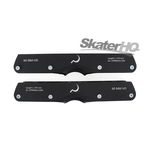 The new Ground Control HD 60 is made of high grade alloy. The HD frames are stiffer and more responsive than the typical UFS plastic grind frame - allowing for increased energy transfer, equaling more speed at the park and in the street. Countersunk axle holes help protect bolts from wear. Interchangeable plastic & aluminum h-blocks offer options for all kinds of obstacles. H-blocks will work on both 60mm & 72mm frames in all lengths. A super fast and nsuper tough set up.