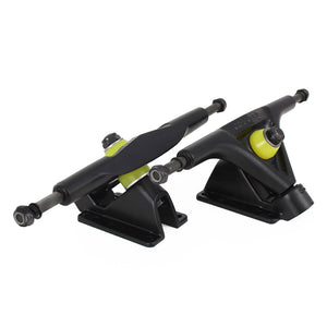Designed for carving tight, quick turns while maintaining stability at higher speeds! 45° Base plates are designed for cruising, freeride and race riding styles use; their special geometry allows for adjusting caster angle by flipping the hanger.